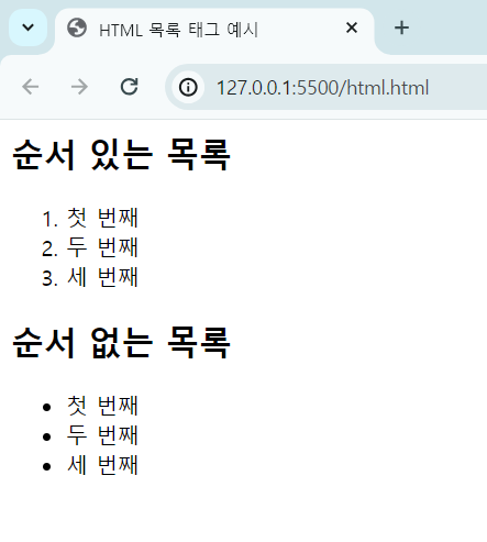 <ol> <li>: 태그를 활용하여 순서 있는 목록을 만들 수 있다. - 순서 없는 목록