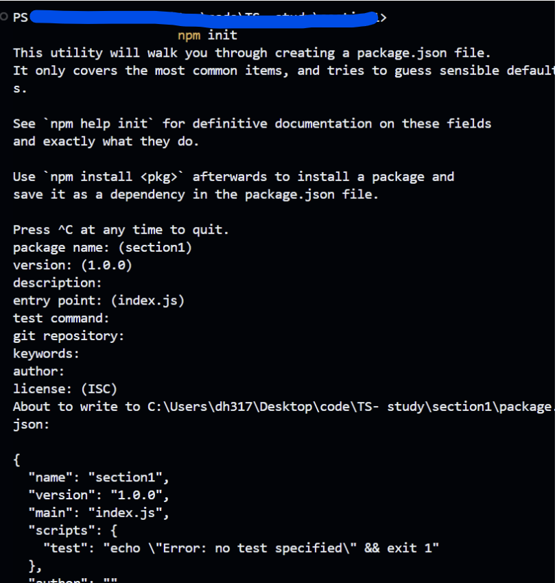 새 폴더를 만든 후 폴더 안에서 npm init을 한 이후 모든 옵션들을 기본적으로 enter로 넘어가게 되면 package.json이 생성되게 된다.